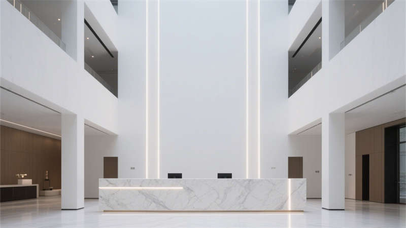 本設計延續此前辦公樓建筑的現代主義基調,讓室內空間與外立面設計語言形成呼應,營造連貫且富有質感的整體氛圍。空間布局以 “通透流暢” 為核心,摒棄冗余裝飾,用簡潔線條勾勒區域邊界,既保證各功能區的獨立性,又避免視覺上的割裂感。