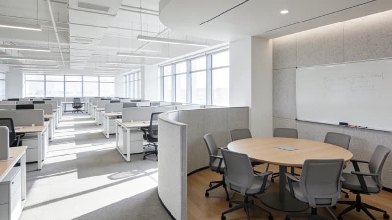 合肥6000㎡辦公樓設計,以“高效、健康、智能”為核心,打造適配企業全發展階段的辦公空間。采用“40%獨立辦公+30%開放工位+30%協作休閑”科學布局,最大化利用每一寸空間。