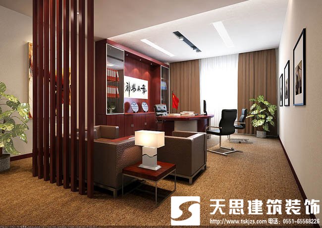 因此,單純簡單就是現代辦公室在裝修上所要突出特點。簡單并非是簡陋,“簡”和“約”只是手法,作品的藝術性并不簡約。如現代標志裝修中就常用夸張、省略、適合等手法,用合二為一、合三為一、共有形等手段,把標志的造型設計精簡到最佳狀態。簡單的裝修風格受到很多設計師的喜愛,這種裝修風格被更多的運用到辦公室中來。這些辦公空間在風格上要有所突破,但仍要考慮到空間的尺寸大小。設計師通過對辦公室整體的裝修,讓來訪的客戶和員工一進公司辦公室,就能對企業有了一些基本的認知和良好的第一印象。