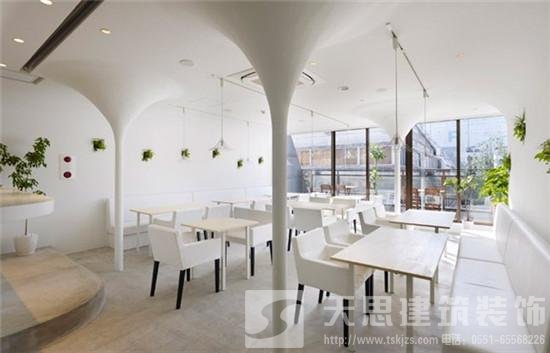 合肥餐廳設計者從綠色健康的消費理念出發,將蔬菜的概念引入到餐飲空間當中。餐廳設計中打破了常規的空間形式,將廚房空間作為形式設計的重點,加強了就餐者與制作者的交流性,使人們體驗到一種開放式廚房的就餐感受。平面設計很有創意,功能基本合理;在立面的設計中引入了豎向綠化的概念,豐富了空間效果,也呼應了餐廳設計空間綠色健康的主題;在家具方面也有一定的創意。