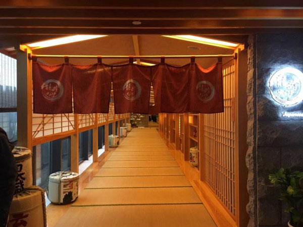 通常是門(mén)口有一個(gè)3段式,或者是4段式的暖簾,寫(xiě)上自己的店名,中文日文,或者是其他,然后通向廚房的門(mén)口掛上一個(gè)暖簾。