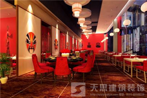 川菜以麻辣為主,辣椒是川菜中不可缺少的作料,而紅色正是這種火辣的象征符號,所以紅、暗紅、黑紅是川菜館裝修設計中不可缺少的元素。整體裝修色調需要色彩鮮明,協調統一。
