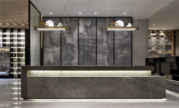酒店在不同層次的設(shè)計上靈活運用了徽州文化的核心特點來汲取神韻氣質(zhì),結(jié)合空間的整體系列性,將文化元素滲透到每一個細(xì)節(jié)中,將經(jīng)典重現(xiàn).營造極具東方美學(xué)觀感的藝術(shù)空間.設(shè)計團(tuán)隊通過對傳統(tǒng)與現(xiàn)代結(jié)合,含蓄與精致并存,兩種不同意境相映成輝,從文化底蘊(yùn)、材料、軟裝色彩......去推敲空間的序列,實現(xiàn)了酒店的魅力.既體現(xiàn)出人們對當(dāng)代藝術(shù)與文化的追求,又勾勒出東方意境的沉穩(wěn)靜謐.