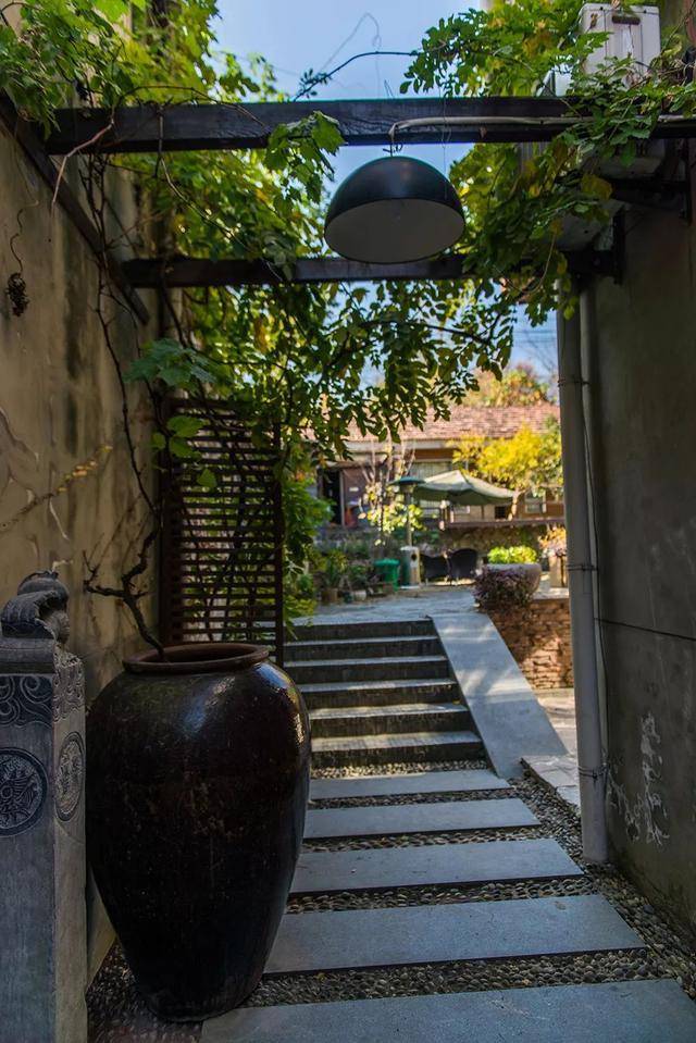 民宿門口很小,佇立著兩個(gè)石像,進(jìn)去之后發(fā)現(xiàn)里面別有洞天,里面的面積很大,大有曲徑通幽處之意。