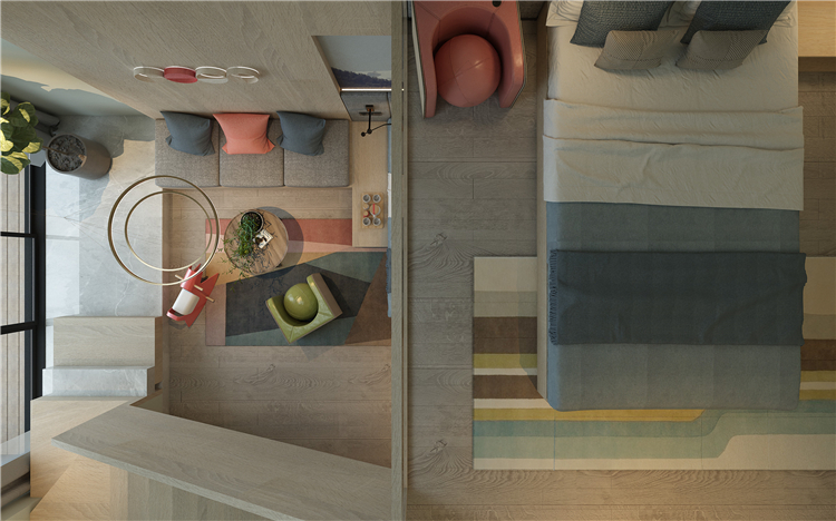 這些匠心的設計,令空間在保留原有通透性的情況下規整而不凌亂,給人以直觀的親近感受臥房的燈光在功能上具有有針對性,點光源很少,多采用柔和的氛圍光,而貼心明亮的臺燈設計,亦可滿足人們的閱讀需求。