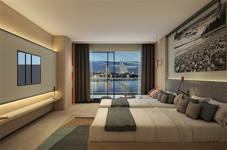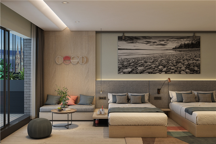 在功能的安排上人性化,為顧客帶來舒適的入住體驗與外立面相呼應,設計師在完整的用材體系上,增加了對比性明顯的色塊,高度提升了空間的趣味性和耐看度。