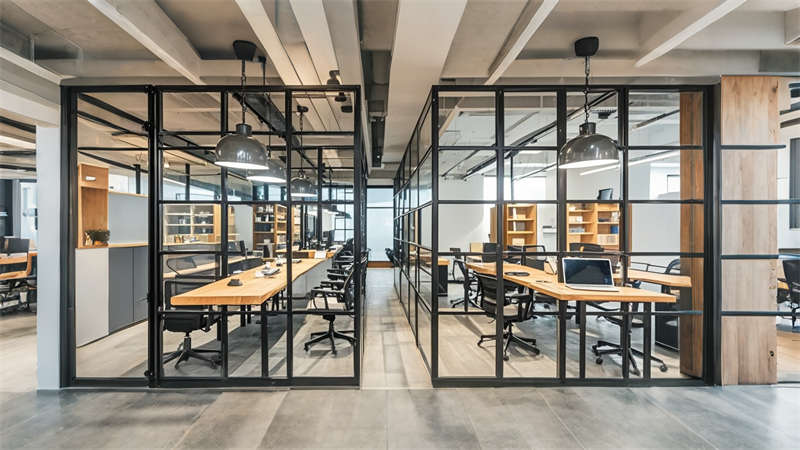 本6500㎡廠房設計采用現(xiàn)代工業(yè)風為核心,融合功能性與科技美學。空間規(guī)劃嚴格遵循生產流程,劃分生產、倉儲、辦公、輔助四大模塊,通過鋼架玻璃隔斷實現(xiàn)通透性與分區(qū)管理。主色調選用深灰、淺灰、企業(yè)藍三色體系,地面采用耐磨環(huán)氧地坪漆,墻面運用金屬波紋板與混凝土質感涂料。智能化設計貫穿全廠,集成AGV物流系統(tǒng)、環(huán)境監(jiān)測屏及LED導向標識。重點區(qū)域如入口LOGO墻、橙色休息區(qū)等植入色彩心理學應用,既保持工業(yè)空間理性特質,又提升員工舒適度。照明系統(tǒng)采用分級控制,生產區(qū)6500K高顯指LED工礦燈保障作業(yè)精度,辦公區(qū)4000K暖光營造高效氛圍。