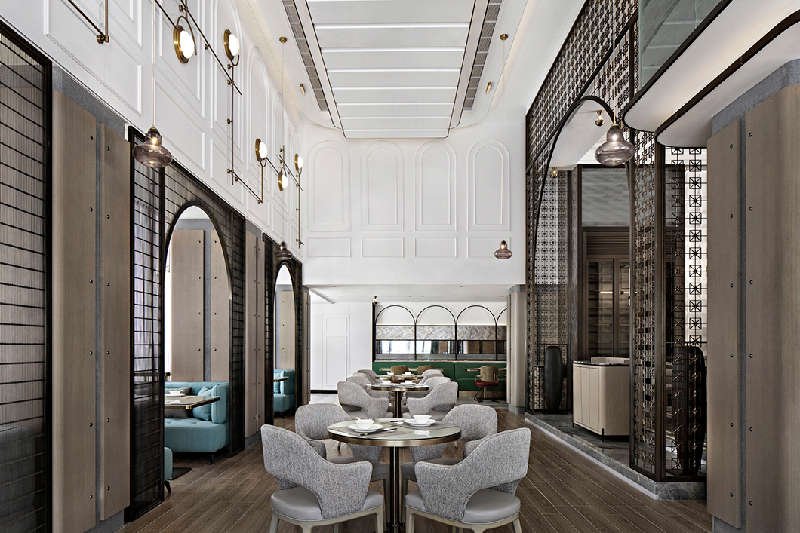 酒店大堂的設計著眼於化繁為簡,摒棄以往酒店富麗堂皇的水晶吊燈,采用了更為輕快時尚的設計,成穩大氣的色調給顧客一種回歸本質的自由形態。