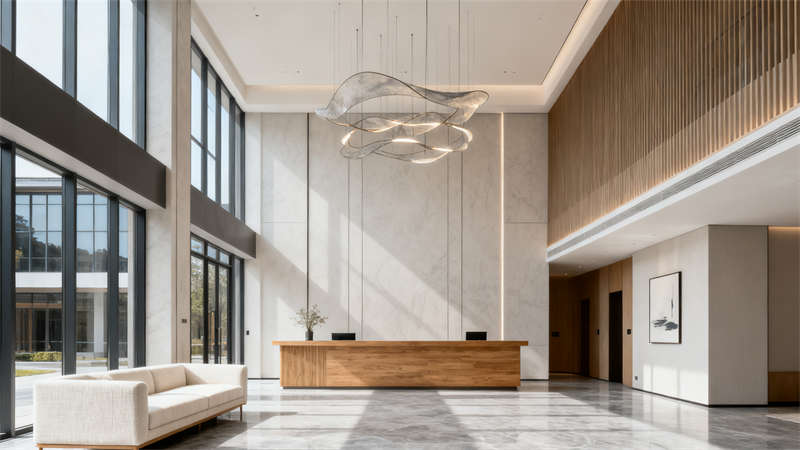 進入室內,大堂區域寬敞明亮,淺灰與米白的主色調營造出干凈清爽的氛圍,搭配原木色元素增添溫馨感,合理的空間布局讓動線清晰流暢,接待區與休息區劃分明確,既滿足功能需求,又提升了整體的格調。?