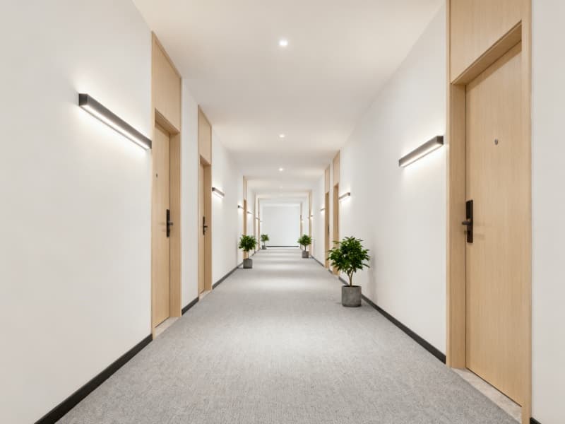 設計中注重細節的把控,從地面材質的選擇(如走廊的靜音地毯),到照明的搭配(如茶吧的間接照明),再到綠植的點綴,每一處細節都圍繞“簡約舒適”展開。既保證空間的整潔有序,又通過柔軟的材質、柔和的光線與自然綠植,為簡約空間注入溫度,避免過度簡約帶來的生硬感。?