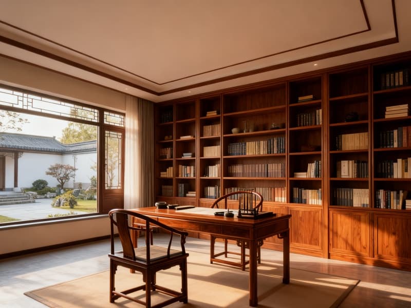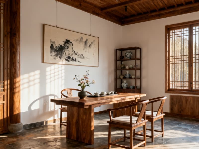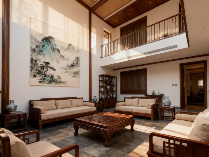 本設(shè)計以中式新古典風(fēng)格為核心,為合肥民宿勾勒出兼具古韻與雅致的居住空間。外觀設(shè)計融入傳統(tǒng)建筑的對稱美學(xué),青瓦與木構(gòu)相映,清晨柔光灑落時,墻面與門窗的線條更顯溫潤,搭配門前錯落的綠植,悄然營造出清幽靜謐的氛圍,既保留中式韻味,又不失現(xiàn)代居住的舒適感。?
