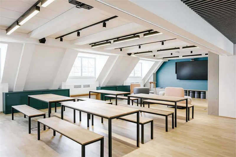 在與客戶的密切合作以及對方員工的積極參與下,設計師成功創建了一處精彩的工作空間,在這里,人們可以集中精力專注工作,也可以隨時隨地進行各種不同的協作、交流、互動和頭腦風暴。各種不同主題的廳廊空間、靈活多元的協作空間、以及巨大的屋頂露臺,讓這處空間變得獨一無二。空間隨著人們的移動不斷變化著景觀視線和功能場景,豐富而精彩的設計讓這里步移景異,充滿驚喜和樂趣。