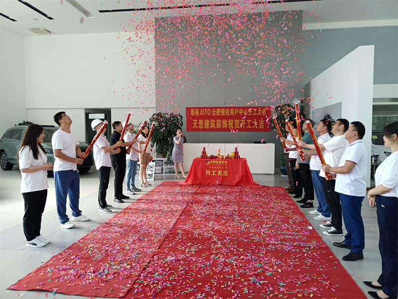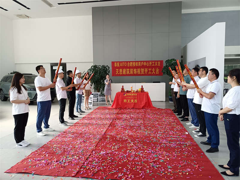 2022年8月5日,我們又迎來了新項目的開工,在這里安徽天思裝飾全體員工恭賀AITO合肥授權用戶體驗中心裝修工程開工大吉!開工儀式于項目現場隆重舉行?,F場禮花飛舞,開工錘聲音響徹工地每一個角落,讓我們再一次恭祝AITO合肥授權用戶體驗中心開工大吉!