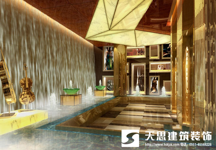 首先,KTV裝修設計大廳是非常重要的,消費者進來第一眼看到的是它,所謂第一印象非常重要。大廳設計要寬敞明亮,可以擺放一些桌椅作為休息等待區。比如說預約了包間顧客提前來了,可以稍微等待下。大廳要選用容易清洗的材質來裝飾,地面與墻壁的配搭建議采用灰黑色系且帶有圖案的材質。這樣顯得大廳空間寬敞些有立體感,整體的裝修設計要以顧客的感受為主,讓顧客能體驗到舒適感。