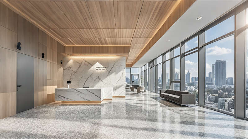 東西方美學對自然與人工材質的偏好差異,恰為設計提供了創新契機。宿州某文化創意園辦公室中,設計師用西方常見的混凝土與原木結合東方竹編元素:混凝土立柱粗獷硬朗,竹編屏風則柔化了空間邊界;原木色會議桌搭配青花瓷紋樣的玻璃隔斷,冷暖材質在沖突中達成和諧。色彩層面,西方偏愛的黑白灰基調與東方傳統的朱紅、靛藍形成互補——某設計公司前臺以深灰色石材為底,墻面嵌入紅色漆器浮雕,既不過分濃烈,又避免性冷淡的疏離感。這種“去符號化”的材質混搭,讓空間成為文化共生的載體。