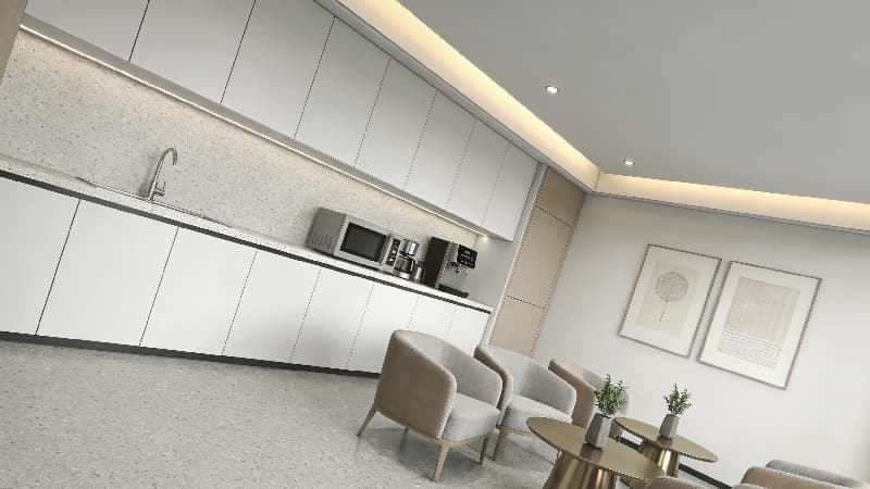 本設(shè)計(jì)以簡(jiǎn)約大氣為核心,秉持去繁就簡(jiǎn)的設(shè)計(jì)理念,打造兼具高級(jí)感與實(shí)用性的辦公空間。裝修整體采用灰白黑為基礎(chǔ)色調(diào),搭配低飽和中性色點(diǎn)綴,線(xiàn)條流暢利落,無(wú)冗余裝飾,凸顯空間開(kāi)闊感與質(zhì)感。材質(zhì)上選用巖板、實(shí)木、玻璃與金屬等,通過(guò)細(xì)膩的紋理與光影層次,提升空間格調(diào)。