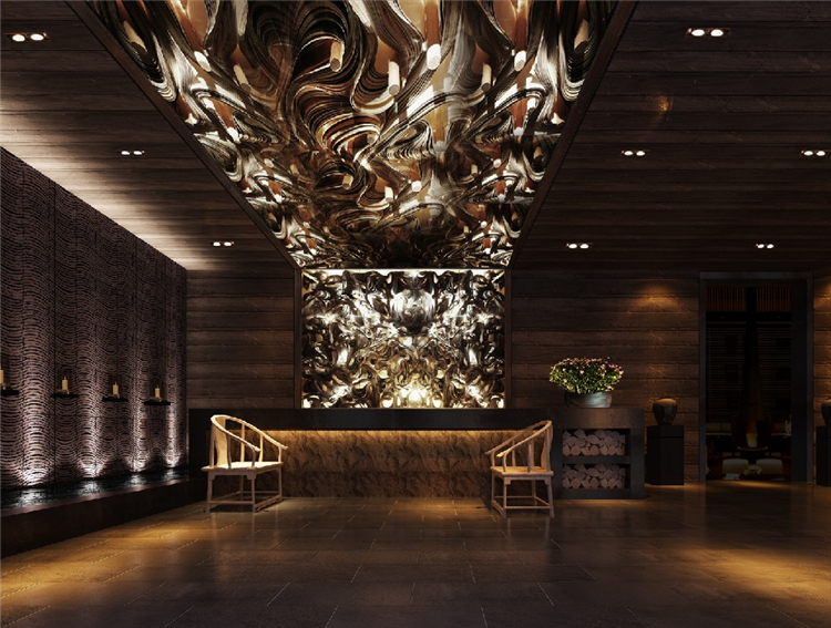 投資方希望打造一個具有民族特色又同時具備國際化背景的星級度假類型的酒店設計。對傳統(tǒng)文化的有機傳承和再創(chuàng)造是設計師始終思考的命題。以山、水、鼓、火、圖騰犬五大元素為主線貫穿于室內設計中。