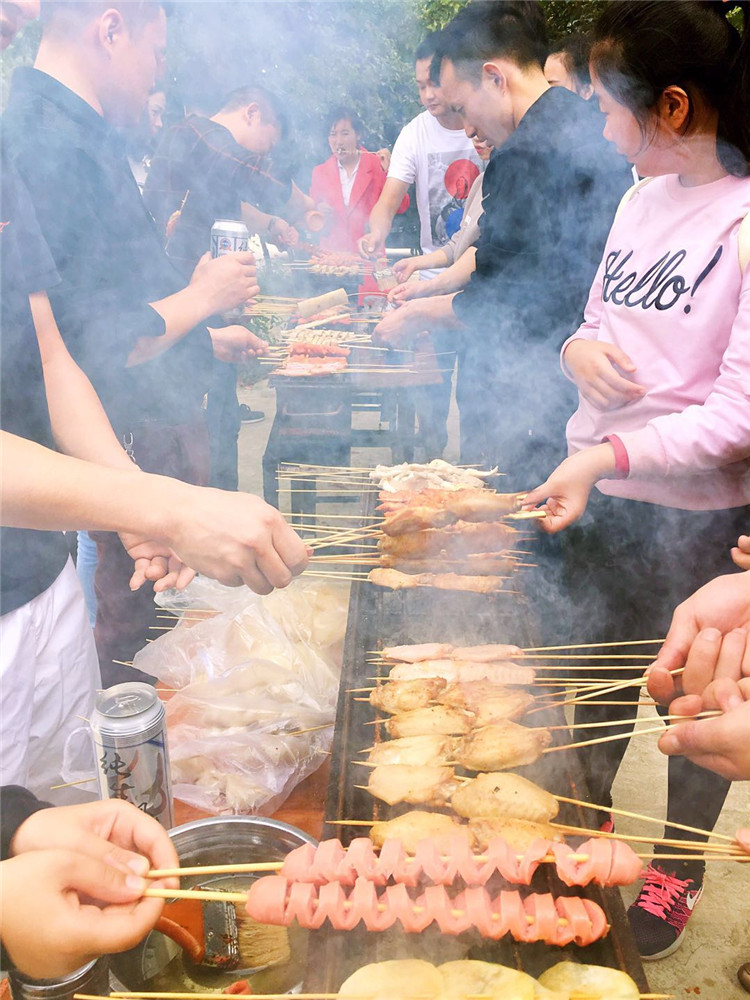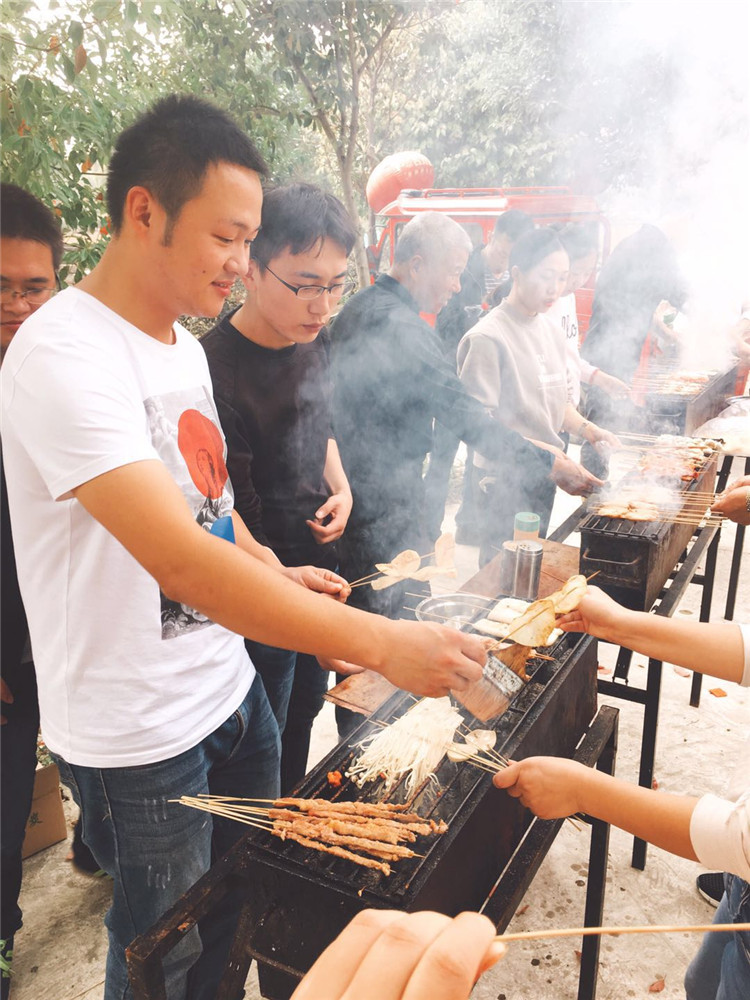10月21日,大家準(zhǔn)時(shí)到達(dá)目的地。領(lǐng)導(dǎo)與員工穿插入座, 拿材料、搬爐子、生火……看著熊熊的炭火燃燒著,整個(gè)現(xiàn)場(chǎng)頓時(shí)沸騰起來。活動(dòng)期間,大家興致勃勃地互相交流,增進(jìn)了相互之間的了解與認(rèn)識(shí),促進(jìn)了部門與部門間的合作精神,拉近彼此的距離。