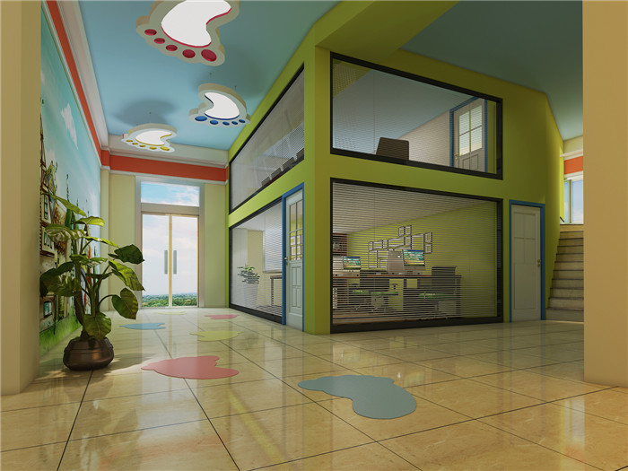 項目簡介:本項目位于六安市霍邱縣馬店鎮的金蘋果幼兒園,裝修設計上主要采用現代風格為主,大廳采用暖色系燈光設計,簡約的室內空間,營造一種輕松自然與和諧的生活情調。教室內大膽的運用高純度的鮮艷顏色,裝飾設計上的線條強調流暢。繽紛的色彩搭配讓整個室內空間煥然一新,賦有藝術的環境創設,能夠培育孩童賞識美、感觸美、和發現美的才能,并能熏陶孩童的情趣。